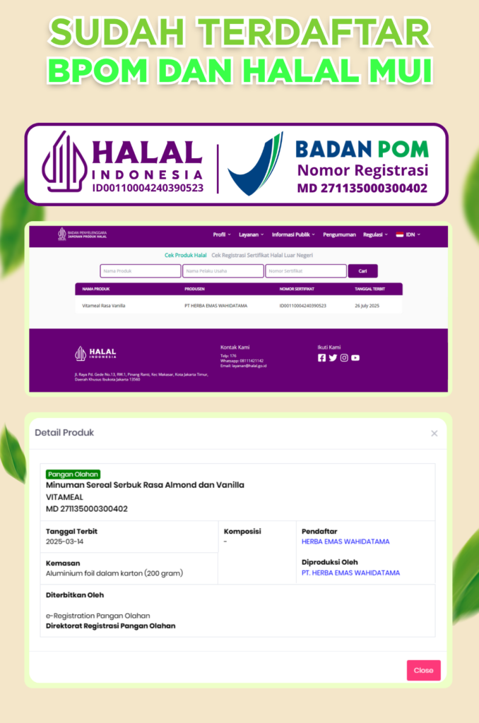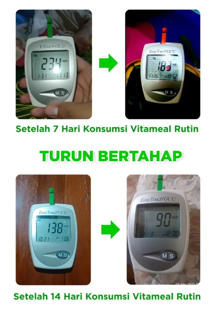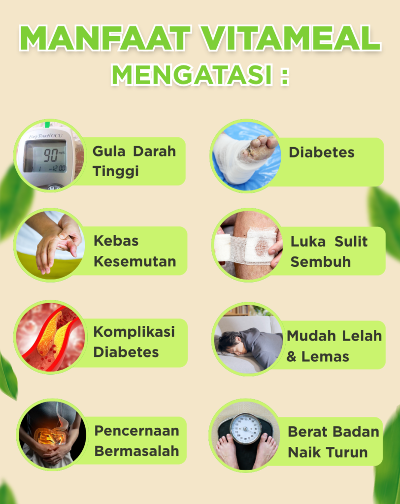 Vitameal dirancang bukan sebagai obat, melainkan nutrisi herbal alami untuk bantu menjaga gula darah tetap stabil dan mencegah risiko diabetes.